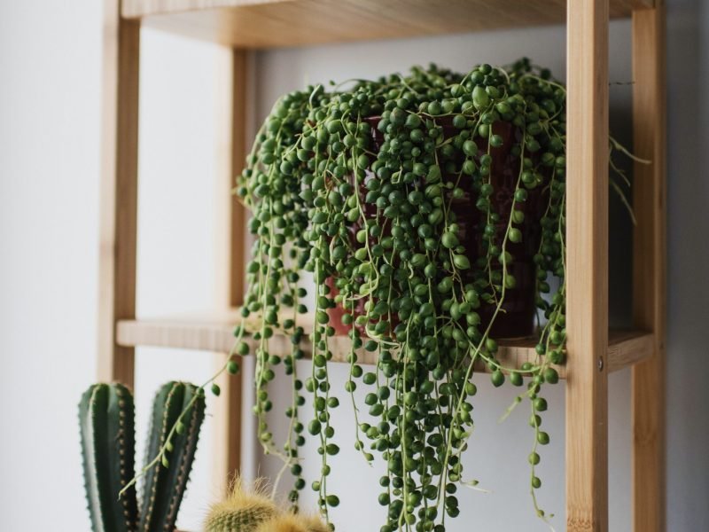 When choosing a new spot for your String of Pearls, make sure that it won’t receive any direct light (especially in summer) as you don’t want to burn the leaves on your plant. Instead, find a spot with great bright but indirect light to keep your plant thriving.